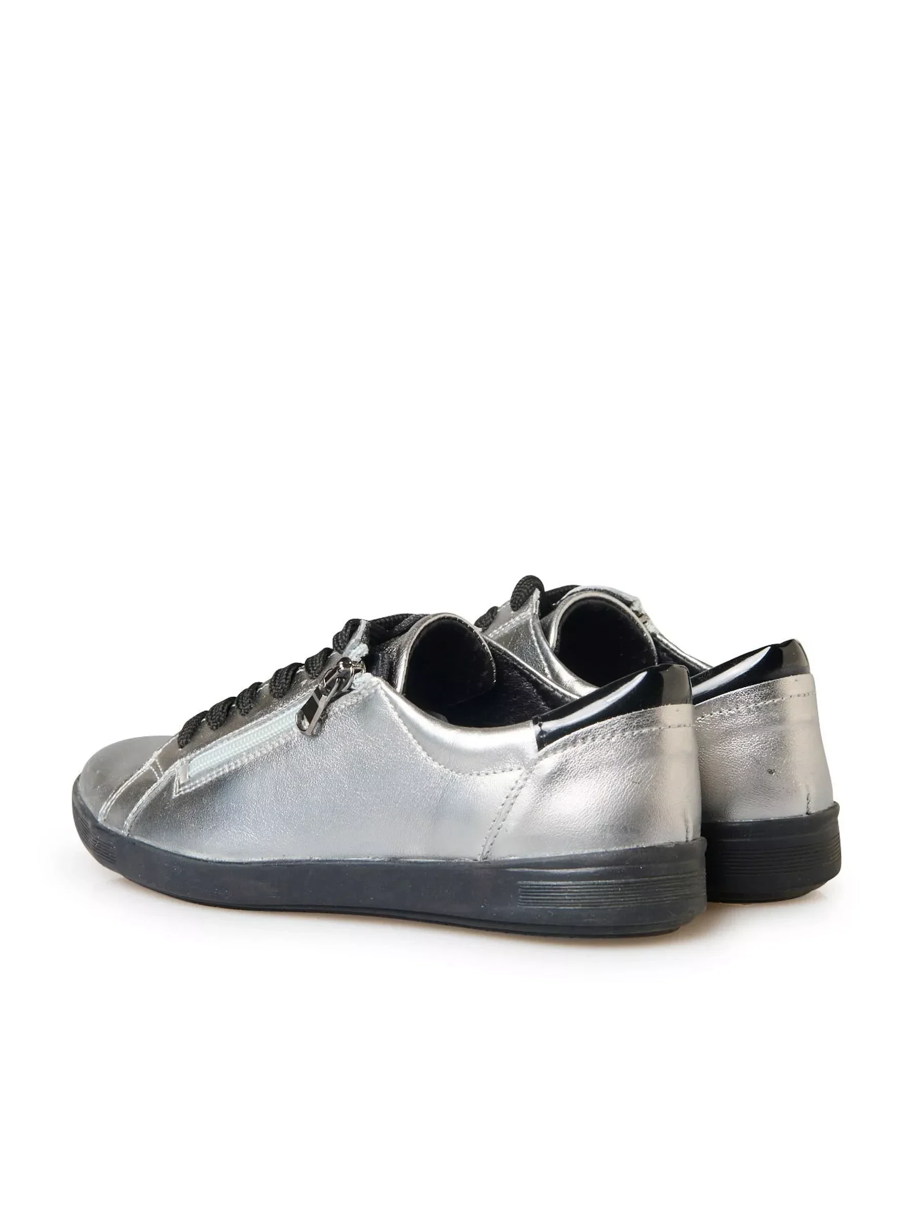 Feste Schnürung für einen stylischen Look, seitlicher Reißverschluss für einfaches An- und Ausziehen: Diese silbernen PEDICONFORT® Sneaker sind einfach genial! – Schnür- und seitlicher Reißverschluss – Gepolsterter